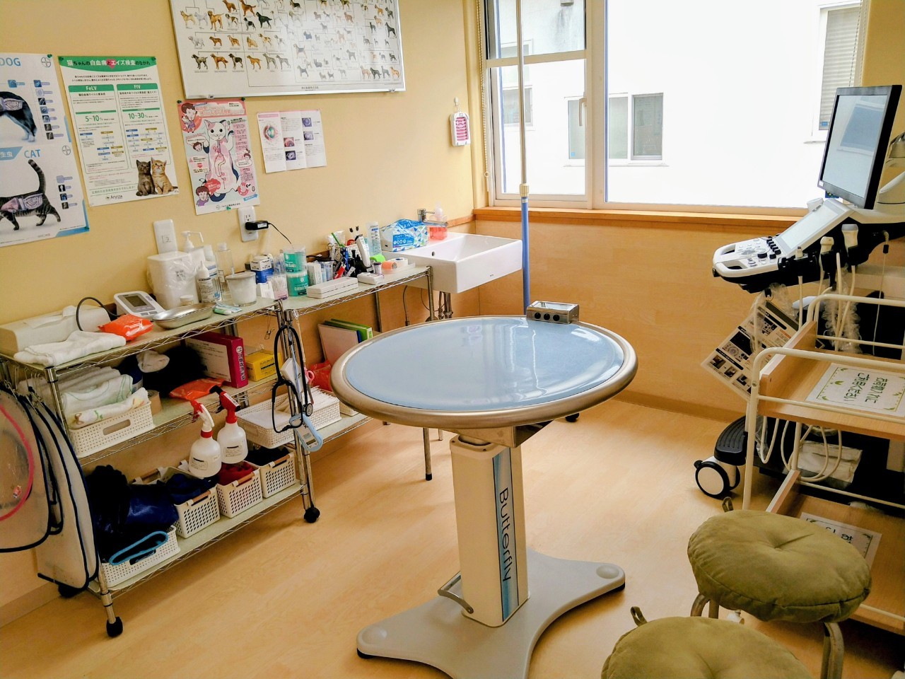 清潔感がある診察室では、ペットの様子や病状を飼い主さんからゆっくりお聞きしながら診察いたします。